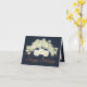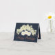 Belo buquê composto por orquídeas de cor creme e flores de rosa brancas contra fundo de cor marinho. O texto cor laranja usa uma fonte de tipografia de script atraente. As flores cobrir a frente deste cartão que pode ser usado como cartões de agradecimentos de casamento, cartão de aniversário ou qualquer outro cartão de sua escolha. Personalize-o com o seu texto e/ou imagens para torná-lo de um tipo!