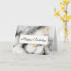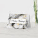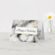 Um cartão de boas-vindas de aniversário feliz com um dentro de mensagem. Projetado com um elegante e moderno padrão marmoreado. Cinzas brancas, pretas e enfumaçados marmoreadas com fitas finas de espirais douradas ao longo do padrão. Um retângulo com borda falsa dourada e o texto "Feliz Aniversário" escrito dentro. Um dentro de mensagem que você pode personalizar.