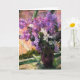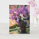Mary Cassatt Lilacs greeting card. Oil painting on canvas from 1880. American artist Mary Cassatt was one of the great female impressionist painters. Lilacs in a Window is a beautiful and simple painting featuring a bunch of freshly cut lilacs in a purple vase sitting on a windowsill. The lilacs are both purple and white and their foliage is still dark green. A beautiful gift for fans of Mary Cassatt, impressionism, lilac paintings, and American women painters.