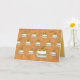 Este cartão caprichoso apresenta treze abóboras de olhos arregalados usando máscaras e sentadas em pratos de torta. Dentro diz: "De todo o pomar de abóboras, desejamos a você um Dia de Ação de Graças saudável e feliz". Ótimo de uma família para outra, ou de um grupo de colegas de trabalho, ou funcionários, para o chefe, ou cliente.