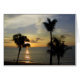Palmeiras suaves a balançar em frente às nuvens de pastel, enquanto o sol a pôr se reflete no oceano em Kahana, Maui / Havaí