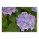 Um bonito cartão floral com grandes flores de hydrangea florescente... folhagem verde brilhante. Perfeito para várias ocasiões diferentes.