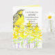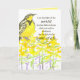 Um cartão de saudação cristão com uma escritura do livro de John 8:12 KJV e decorado com um pássaro de pata-rosa brilhante numa mancha de flores silvestres douradas ilustradas com tinta e aquarela. No dentro está uma sombra coordenadora de amarelo com texto marrom que pode ser editado para ajustado de suas necessidades.