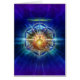 Meditator de assento cercado pela flor da vida e de raios claros com fundo roxo. Por Daniel B. Holeman.