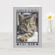 Diga-lhe que ela é a "Melhor Mãe Gato do Mundo" com este cartão de aniversário fofo. Personalize este cartão fofo com a foto do seu gato precioso no quadro preto e cinza com estampas sobre um fundo de madeira prateada rústica. O dentro diz "Feliz Aniversário! (meu prato de comida está vazio)', personalize o fechamento com o nome do seu animal de estimação.