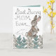 Uma simples saudação de texto para uma mãe coelhinha especial escrita num estilo de coelho engraçado e único! Mães coelhinhas entenderão! Meu design apresenta uma das pinturas bonitinhas de coelho de cinza. O dentro diz, "Hoppy Birthday!" Teal macio e branco com sotaques de cinza. Um cartão humorístico para o amante de coelhos em sua vida! Trabalho de arte e design únicos de Tuzi Williams.