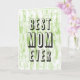 Para a mãe progressista. Um simples design de letras em bloco que apresenta camadas de fontes verdes translúcidas com uma saudação "Melhor Mãe do Mundo" em uma cor preta negrito.