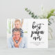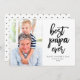 Esta placa de Dia de os pais moderna apresenta a frase "melhor papa de sempre" em um script manuscrito preto com sua mensagem personalizada por baixo. Personalize com sua foto favorita. A parte de trás apresenta corações negros em fundo branco.