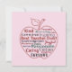 A apreciação ao professor de maçã vermelha apresenta uma tipografia colorida que diz "Melhor Professor de Todos os Tempos!" e cita qualidades de um grande professor, incluindo Gentil, Perspicaz, Motivador, Calmo, Comprometido, Inspirador, Conhecedor, Alegre, Disciplinado, Humilde, Paciente, Apaixonado, Curioso, Cuidadoso, Perspicaz e Incrível. Seja para o Dia ou Semana de Apreciação ao Professor, seu aniversário ou qualquer dia especial para mostrar sua gratidão, a caneca de café é um presente especial para o professor em sua vida! As cores de fundo rosa e azul são personalizáveis caso você deseje editá-las para a(s) cor(es) preferida(s) sua ou do professor.