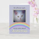 Adicione um cartão do design do arco-íris da foto -- O azul adiciona a foto do seu próprio animal de estimação a este cartão da relembrança que caracteriza um design esperançoso e inspirando da ponte do arco-íris. Criar uma lembrança para lembrar-se ou alguém que você se importa aproximadamente de um amigo amado, se furred, emplumado ou finned. Ou envie como um cartão de simpatia de consolação para alguém que está vindo aos termos com perda do animal de estimação. Este cartão mostra um gato branco doce mas recorda-o que você pode transferir arquivos pela rede uma imagem do seus próprios e a mudar a todo o animal de estimação: cão, gato, hamster, peixes, pássaro, rato, coelho de coelho, cavalo, ou um animal mais exótico. Todo podem descansar na paz que se encontra sobre a ponte do arco-íris.