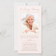 Este elegante cartão fúnebre do memorial de simpatia fotográfica personalizado apresenta uma foto bordada por um fundo de cor-de-água cor-de-rosa-rubor. Acima da imagem, lê-se no moderno guião manuscrito "In Loving Memory". Abaixo está um nome, datas com mensagem memorial destacada por um divididor floral floral floral. A parte traseira da placa é cor-de-água rosada e rosada. Desenhado pela artista ©Susan Coffey.