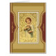 Imagem bonita do bebê Jesus com a coroa de espinhos e de unhas em suas mãos. Fundo do ouro & da Borgonha.
