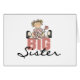 Um design adorável da irmã mais velha que caracterizam uma menina que senta-se no texto que lê a "irmã mais velha" que guardara um grupo de rosas cor-de-rosa em t-shirt da irmã mais velha, sacolas, etiquetas, botões, canecas, e mais.