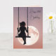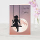 Silhueta da menina no balanço com uma lua cheia no céu rosa para os 30 anos.