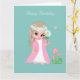 Cartão Menina de Fada Fofo com Flor em Aniversário Azul C