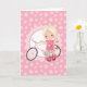 Cartão Menina Loira de Bicicleta - Rosa Branco