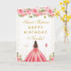 Este cartão de aniversário de sweet sixteen elegante e glamoroso pode ser personalizado com um nome ou título, como filha, neta, sobrinha, amiga, etc. O design apresenta uma bela princesa com cabelos castanhos e pele clara em um vestido de baile rosa. O texto combina caligrafia manuscrita e fontes modernas sem serifa para um visual sofisticado e elegante. Os arranjos florais, borboletas e confetes dourados criam a combinação perfeita de rústico e chique.