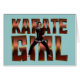 Texto vermelho brilhante e uma menina do karaté na pose. T-shirt, camisolas, canecas, posters, e outros presentes para a mulher das artes marciais de todos os níveis. Engrenagem colorida para o instrutor, o estudante, o cinturão negro, ou o fã do karaté.