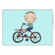 Cartão Menino no camiseta e nos presentes da bicicleta