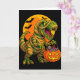 Cartão Meninos de Halloween Dinossauro Múmia T Rex E Abób