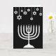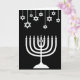 Estrelas de David pretas e brancas e menorá de Feliz Hanukkah cartão personalizado.