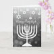 Estrelas de David pretas e brancas e menorá de Feliz Hanukkah cartão personalizado.