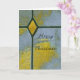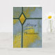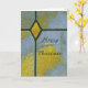 Minha foto mostra vitral. As cores são azul e amarelo . Sua mensagem pode ser parabéns, Feliz Natal, aniversário ou um convite. A forma de diamante e as linhas pretas me lembram uma cruz cristã sobre o mundo inteiro. Adicione sua mensagem especial.