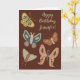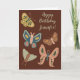 Este cartão bonito é perfeito para aniversários ou qualquer ocasião, uma vez que tanto a mensagem na frente como a mensagem no dentro estão prontas para serem personalizadas com o seu próprio texto. Este cartão apresenta ilustrações do estilo de arte folk de mariposas em cores de terra quente de marrom, rosa, amarelo, verde e azul contra um fundo marrom rico.