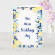 Esta carta fresca e divertida é perfeita para dar os vossos votos a um casal feliz no dia do seu casamento, embora todo o texto desta carta esteja pronto para o vosso toque personalizado para que possam criar uma carta personalizada que seja perfeita para qualquer ocasião. A frente apresenta uma borda de limões amarelos frescos com a horta verde e azul-real, sotaques florais e folhagem, fazer perfeito para casamentos de verão e outros eventos especiais.
