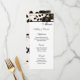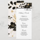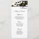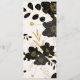 Este cartão de cardápio de casamento é mostrado em papel matte básico em um adorável impressão floral preto e metálico dourado. Script e texto padrão em preto. Personalize clicando no botão personalizar, procure à direita e localize as caixas apropriadas para alterar suas informações. Imagem do stock freepik.com
