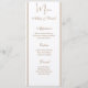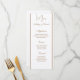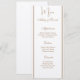 Este cartão de cardápio de casamento é mostrado no papel emboscado em uma impressão de borda em uma cor de ouro. Script e texto padrão em uma cor de ouro. Personalize clicando no botão personalizar, procure à direita e localize as caixas apropriadas para alterar suas informações.