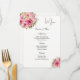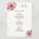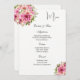 Este modelo de placa de menu é mostrado em papel básico em branco com um adorável impressão floral. Script e texto padrão em preto. Personalize os nomes e os itens de menu clicando no botão personalizar, procure à direita e encontre as caixas apropriadas para alterar as informações. Imagem do stock freepik.com