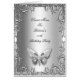 Cartão Menu Janto Placa Prateada Cinza Borboleta Floral