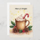 Send warm holiday wishes with this cozy Christmas card featuring a festive cup of cocoa topped with whipped cream, candy cane, and holly leaves. The text Merry & Bright adds cheerful charm — and you can easily edit or remove it to make your own personalized message. Perfect for spreading joy, pairing with gifts, or sharing a cozy note this holiday season.