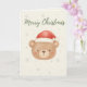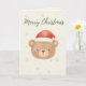 This Tradition Treasures physical greeting card brings that feeling to life with a soft, storybook-style illustration. On the front, a round-faced bear with rosy cheeks wears a bright red Santa hat, set against a light, neutral background with delicate snowflakes and tiny golden stars floating around. Above him, “Merry Christmas” is written in a gentle green script.