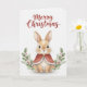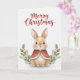 Cartão Merry Christmas Bunny Card Cute Rabbit in Red Cape