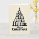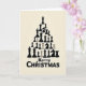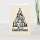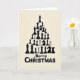 This clever holiday card design features a minimalist arrangement of standard chess pieces stacked to form the distinct silhouette of a Christmas tree. Set against a plain, cream-colored background, the majority of the "tree" consists of black pieces, including rooks, knights, bishops, and queens. Interspersed within the dark formation are four white chess pieces that pop against the black, serving as visual metaphors for ornaments or white holiday lights. A solitary black King piece sits at the very pinnacle of the triangle, effectively representing the traditional star or angel tree topper. Beneath the graphical element, the greeting "Merry CHRISTMAS" is printed in bold black, utilizing a playful script font for the first word and a heavy, block sans-serif for the second. The overall aesthetic is clean, sophisticated, and intellectual, making it a perfect seasonal greeting for strategy lovers or chess enthusiasts. The high contrast between the black silhouettes and the light background creates a striking and modern visual impact.