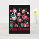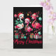 Cartão Merry Christmas Lights Flamingo Santa Hat Snow Xma
