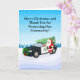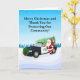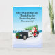 This charming illustration is of Santa with his partner, the red nose reindeer leaning up against a police car with a Christmas tree on the top. It's a great card to give to your local police to thank them for everything they do in keeping the streets safe.