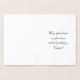 A frente deste ornamentado e design de cartão de saudação de folha de aniversário luxuoso apresenta a mensagem "Feliz 25 de Aniversário" no texto formal do estilo do script. O dentro tem uma mensagem de saudação de aniversário personalizada, ou talvez possa ser apagado e deixado vazio se uma mensagem for escrita manualmente. Um elegante e editável cartão de cumprimentos de aniversário como este pode ser uma maneira respeitável de enviar cartões de aniversários a alguém que está celebrando seu vigésimo quinto aniversário. [~Z0000555]