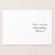 The front of this formal and ornate birthday foil greeting card design features the message “Happy 96th Birthday,” in elegant script style text. The inside has a customized birthday greeting message, or could perhaps be cleared and left blank if a message is to be written by hand instead. A fancy, customized birthday greeting card like this might be sent to celebrate somebody’s ninety-sixth birthday. [~Z0000555]