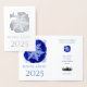 Cartão de Ano Novo com impressão em prata real no exterior. É um floco de neve prateado com texto francês. O mesmo design vem dentro da placa, mas na impressão a cores do cheio. Floco de neve azul - cor d'água em lindas tonalidades azuis. Ele vem com as Desejos do Ano Novo em Francês " Bonne Annee 2025 " Antes de enviar seu pedido - personalize-o dentro com sua família/empresa foto /name /text . Design artístico por Alma Wad.