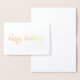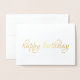 Cartão Metalizado Caligrafia simples de aniversário feliz Dourada
