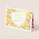 Cartão de anotação de ouro aniversário (folha metálica dourada ou prateada) com desenho de formas cardíacas doces em volta de um coração branco puro com o nome de noiva e noivo na frente, ou uma breve saudação. Os corações são repetidos no dentro da placa em uma cor vermelha brilhante com "Juntos para sempre", ou personalizados com qualquer mensagem curta em caracteres de script caligráfico. Termine o cartão com uma nota manuscrita no espaço do vazio para escrever uma mensagem para um aniversário de casamento, aniversário do cônjuge, Dia de os namorados ou um cartão de nota simples para qualquer ocasião.