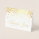 Este cartões de agradecimentos de casamento apresenta uma folha de ouro falso, confetti ponto design e um roteiro elegante, criando um olhar limpo e moderno com uma dica de brilho. Disponível em uma variedade de cores de fundo, a placa pode ser personalizada com seus nomes e uma mensagem de obrigado personalizado. Quer esteja agradecendo aos convidados pela sua presença, presentes ou apoio, este cartão oferece uma maneira elegante de expressar sua gratidão ao mesmo tempo que combina com o estilo geral do seu casamento.