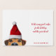 Uma bela ilustração do animal de Natal: Curioso cão vestindo um chapéu de Papai Noel. Cartões de natal sazonal escrito em letras tipográficas modernas.