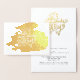 Convide seu convidado para sua festa de férias em estilo com estes convites de festas de folha de ouro formais, mas divertidos. Perfeito para festas de Natal de família, festas de Anos novos, eventos de feriados corporativos. Festa de Férias Dourada, Bebida e Seja Feliz Convide com fundo de soquetes de pincel de ouro e tipografia branca. Adicione seu texto de convite no dentro.