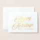 Este cartão de Natal com foto de elegante texto apresenta a frase "Feliz Natal" em folha de ouro na frente.