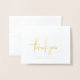 Cartões de agradecimentos de casamento clássico e elegante com um layout simples com "obrigado você" em um roteiro moderno e seus nomes e data de casamento abaixo. Todo o texto na frente está em folha de ouro real. A disposição limpa e minimalista faz este cartões de agradecimentos de casamento excelente para um casamento formal tradicional.