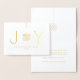 Enviar simplesmente desejos de na moda feriados a clientes, clientes e parceiros comerciais com cartões de natal de folha de alumínio reais elegantes de uma empresa. Toda a redação nesta modelo de cartão dobrado é simples de personalizar. O Enfeites de natal, o logótipo e o texto do lado frontal são impressos com folha de ouro metálica real sobre fundo branco básico. (Para obter melhores resultados, a imagem do logotipo carregada deve ser preta com um fundo branco ou transparente.) O moderno design minimalista apresenta um adorno elegante de JOY e uma simples tipografia clássica. Observe que o interior é impresso a cor, não a folha metálica. Disponíveis tanto em pequenas quantidades como em grande quantidade, esses cartões são adequados para pequenos empresários como para profissionais corporativos. Clientes empresariais, família e amigos adorarão o luxo sofisticado desses cartões de cartões de natal personalizados. Saudações!